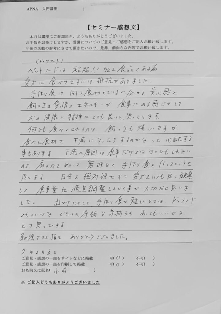 手作り食は何を食べさせているのが分かる安心感と飼い主の愛情のエネルギーが食事にのる感じがして犬の健康と精神にとても良いと思っています。